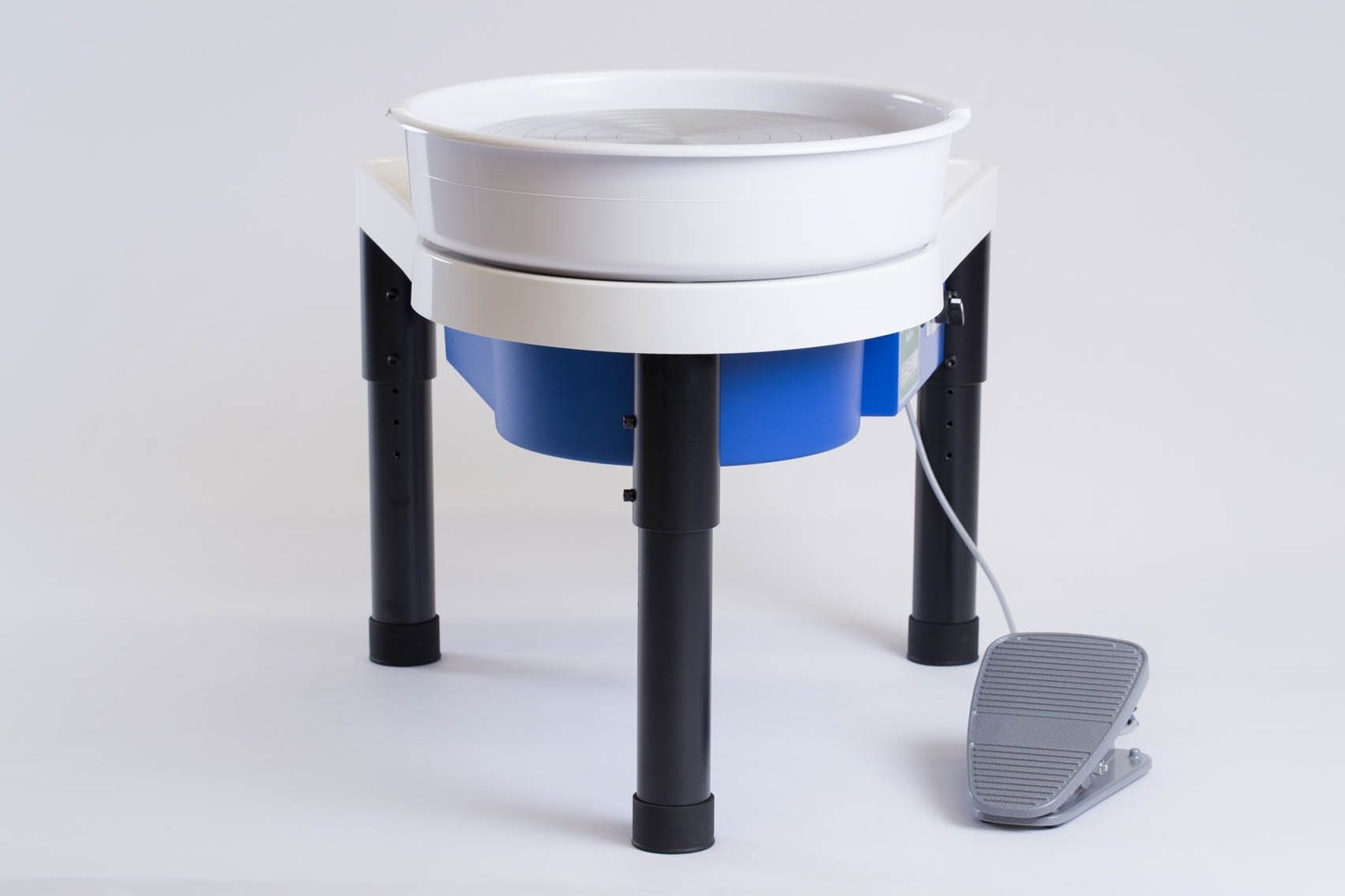 The newest member of Shimpo quality wheels. The Rk-55 is designed to be the small version of the very popular RK-3E. Developed as a highly portable wheel, its light weight making it easily transportable yet sturdy for easy throwing. It features a handy large table, a quiet smooth motor and remote foot pedal enhancing its comfortable throwing position. The rugged plastic body is built to last and stand up to transporting/school conditions.