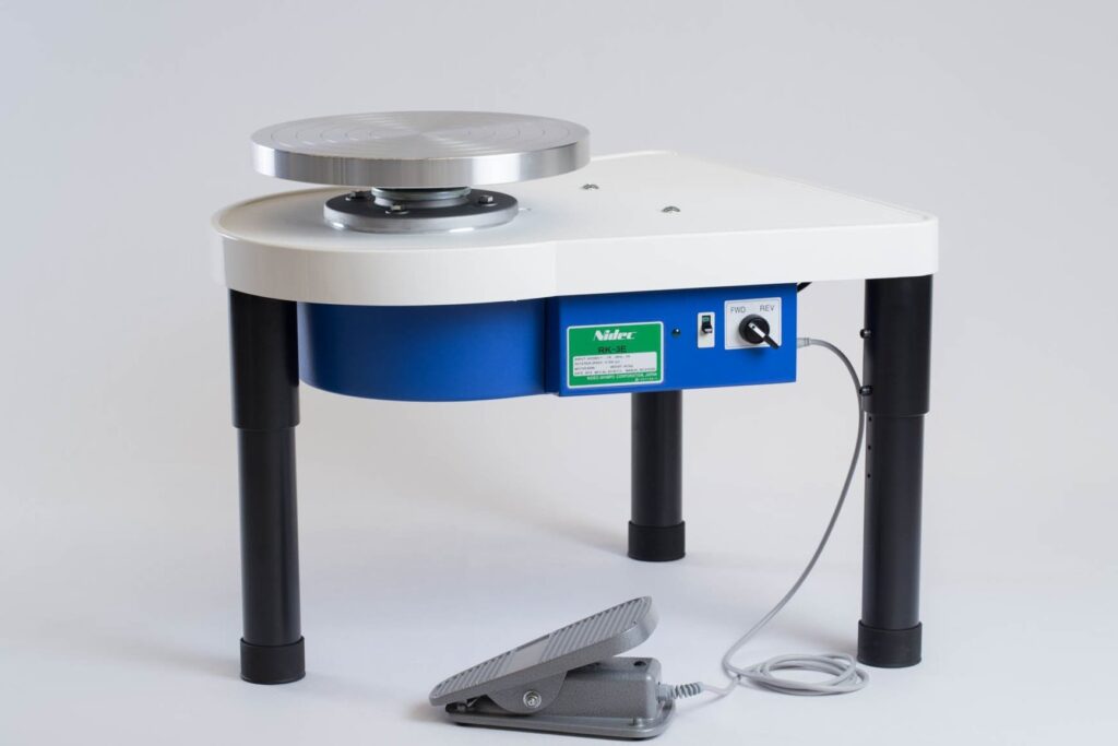 Nidec, a large industrial transmission drive company, and Shimpo, a Pottery Equipment manufacturer merged in 1956 to form the Nidec-Shimpo Corporation. The combination of the advanced R&D that Nidec brought to the table, was and has continuously been applied to the humble Pottery Wheel. The result, whisper quiet operation. Quality and precision to last a life-time.